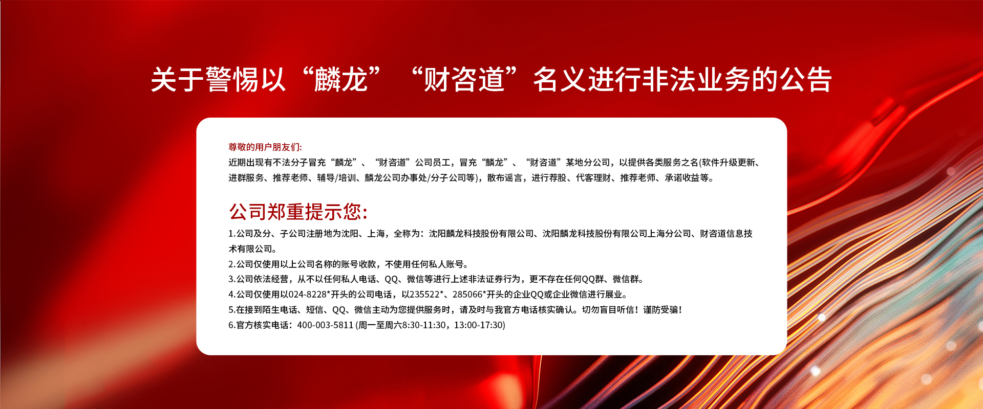 沈陽麟龍科技股份有限公司(以下簡稱“麟龍股份”,證券代碼:430515),是一家專注于金融證券信息服務(wù)的企業(yè),致力于為投資者提供更智能、更便捷、更透明的金融證券信息服務(wù)。公司深耕金融證券信息服務(wù)領(lǐng)域多年,憑借領(lǐng)先的技術(shù)實力和豐富的行業(yè)經(jīng)驗,已成為東北地區(qū)的龍頭企業(yè),位居國內(nèi)行業(yè)前列。